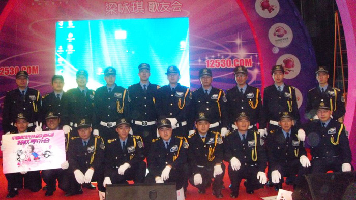 軍事化的管理 統(tǒng)一的服裝、警械配備;嚴(yán)格的警衛(wèi)制度、規(guī)范的軍事訓(xùn)練、統(tǒng)一的內(nèi)勤管理;嚴(yán)謹(jǐn)?shù)难矋彶閸彵O(jiān)督制度、規(guī)范的獎(jiǎng)懲考核制度。形成隊(duì)伍六規(guī)范:軍事訓(xùn)練規(guī)范、內(nèi)務(wù)衛(wèi)生規(guī)范、執(zhí)勤上崗規(guī)范、儀容儀表規(guī)范、文明用語(yǔ)規(guī)范、熱情服務(wù)規(guī)范。